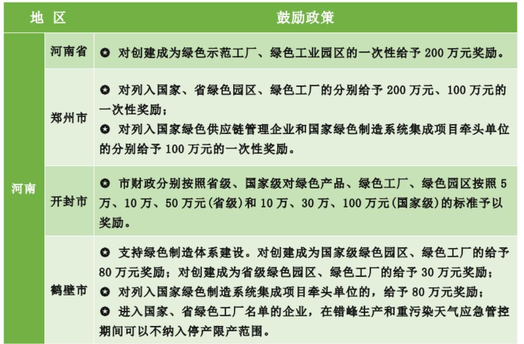 新鄉(xiāng)市:對(duì)成功認(rèn)定的省級(jí)綠色工廠給予一次性獎(jiǎng)勵(lì)20萬(wàn)元。